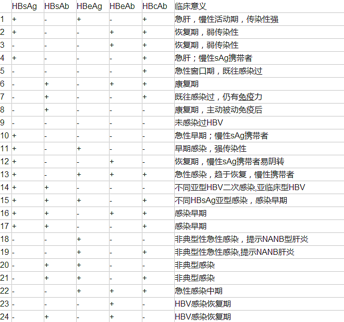 乙肝“两对半”较常见的24种组合模式